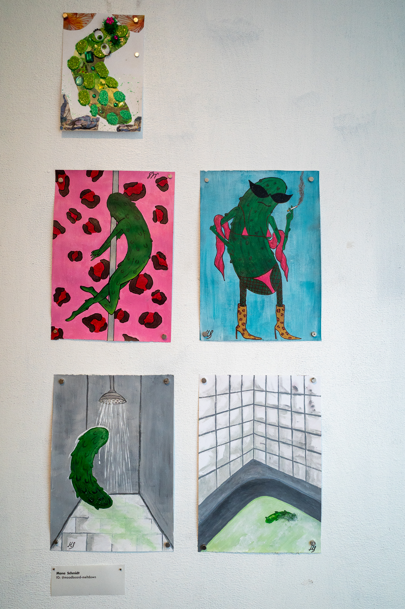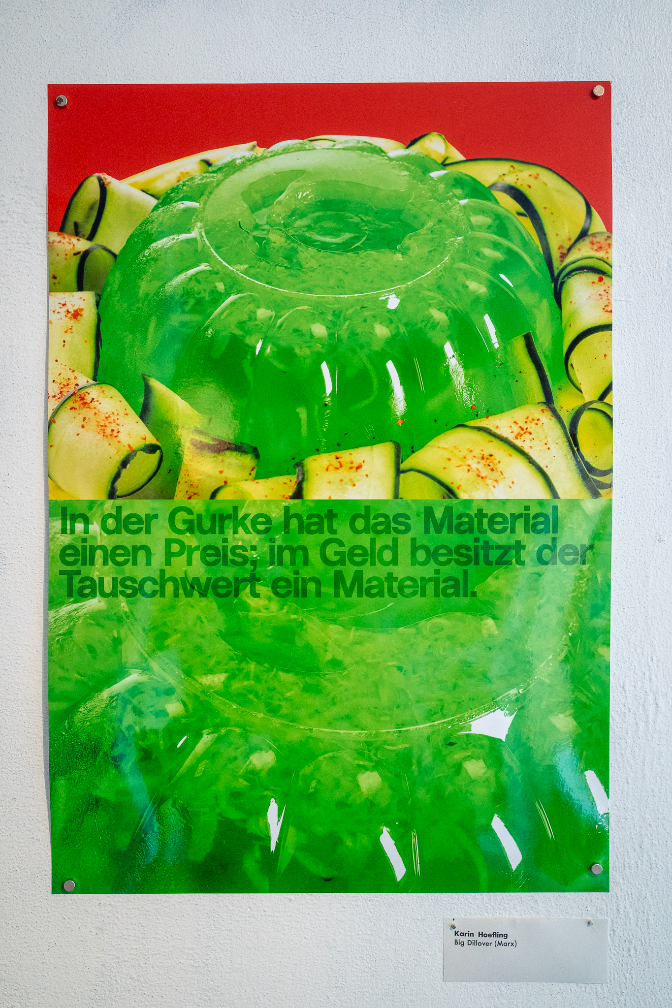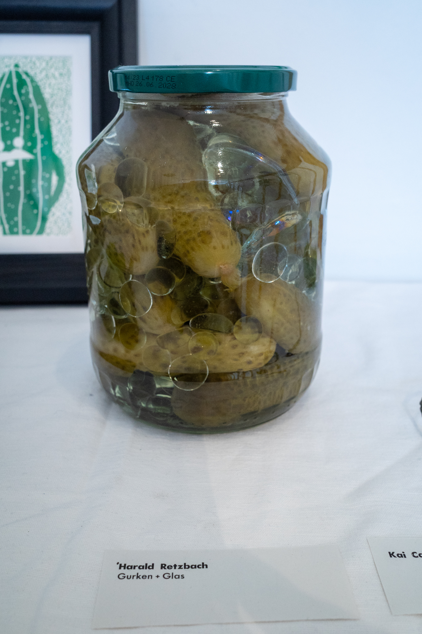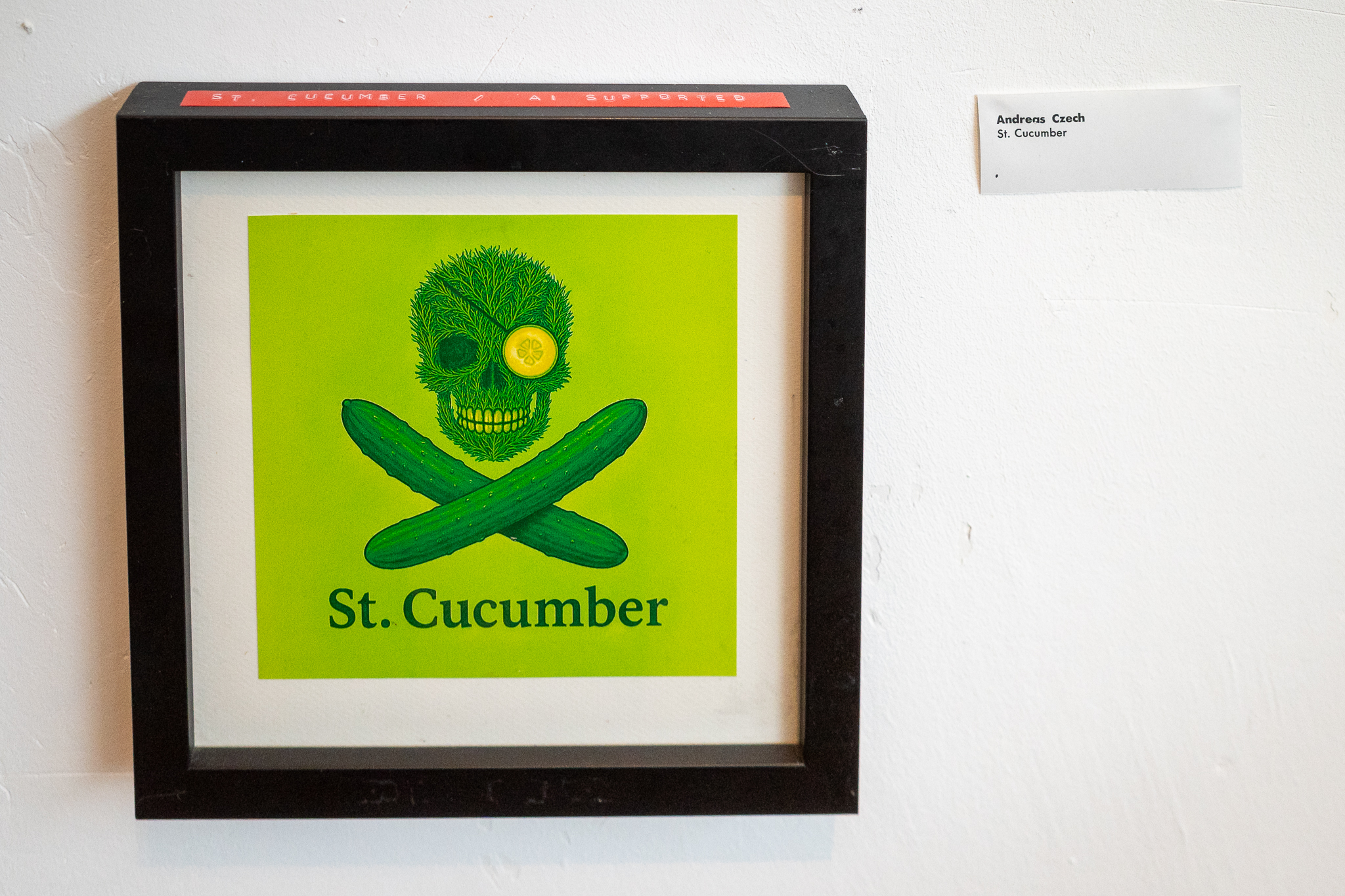 Kukumba My Lord – Dill With It 8 Gruppenausstellung von Gurkenkunst im Nachladen (Sternstraße 17, Hamburg), 06.09.–04.10.2025 Kukumba My Lord – Dill with it 8 Außenansicht des Nachladen am 10.09.2025 Andreas Czech – St. Cucumber Anna Fight – Pickle Sisters mit Sonntagsbraten Biljana Tomic – Santa Kukumba Bernd Spyra – Sturm im Gurkenglas Camila Machado – oT Camila Machado – oT Dada Reinhardt – Kukumba Dots Due Duci – Gurkenmann auf Gurke Daniela Kasimir – Gürkchen mit Schimmel Elisabeth K – „Dauxi Defekt mit Ente und Gurke“ (Foto Anja S.) FrauKe – oT Hans Braumüller – Heimat-BRD Harald Retzbach – Gurken + Glas Hysterical Times – The Art of the Dill Intelligenzbolzen – Gurkin Bag Johanna Königsberger – Gurken im System Julius Wagner – Gurkofon Kai Cassuben – oT Karin Hoefling – Big Dillover (Marx) Lana Bragin – Gurkenbunki Mana Schmidt – oT Marie Hamm – Pink Manta Nicola Hardy – Pickle Power Stefanie Rausch – Caught in the Act Sternstunden des Kapitalismus – Das Maskottchen zeigt sich verletzlich I&II Sternstunden des Kapitalismus – Dill With It Button Set Marti – oT Suchtdruck – Arbeiter und Spreewaldbäuerin