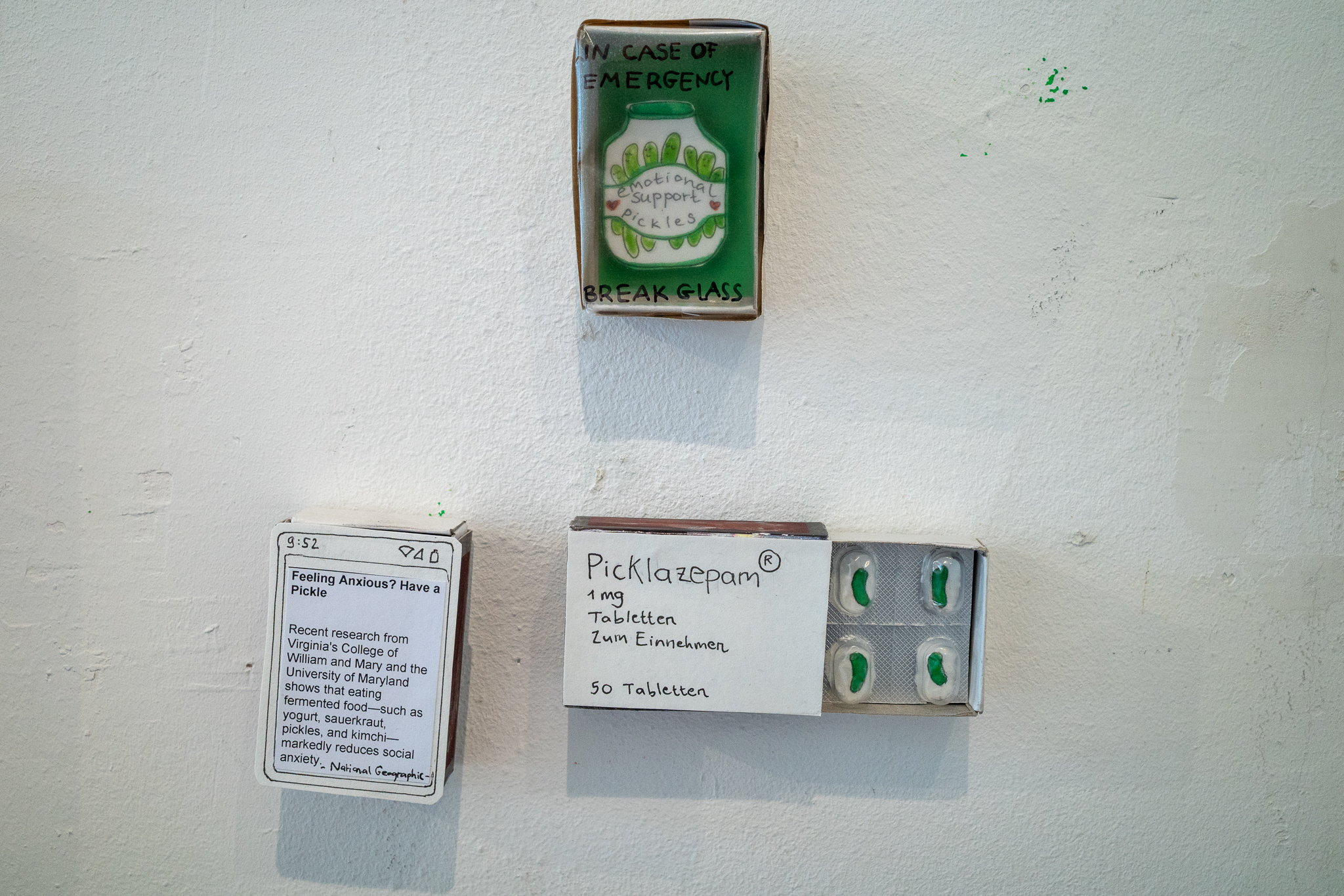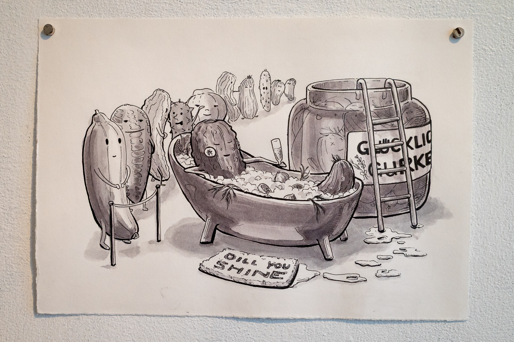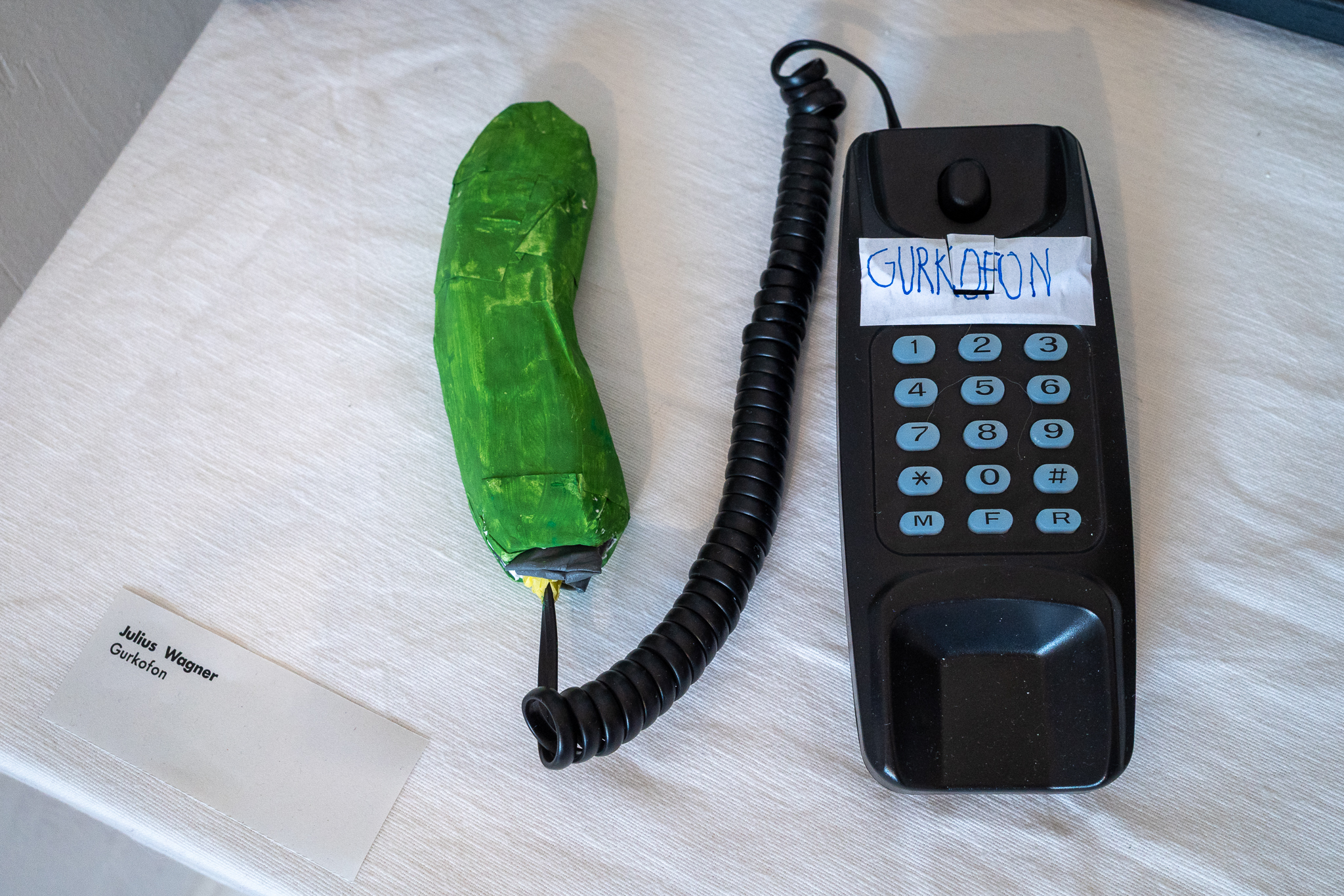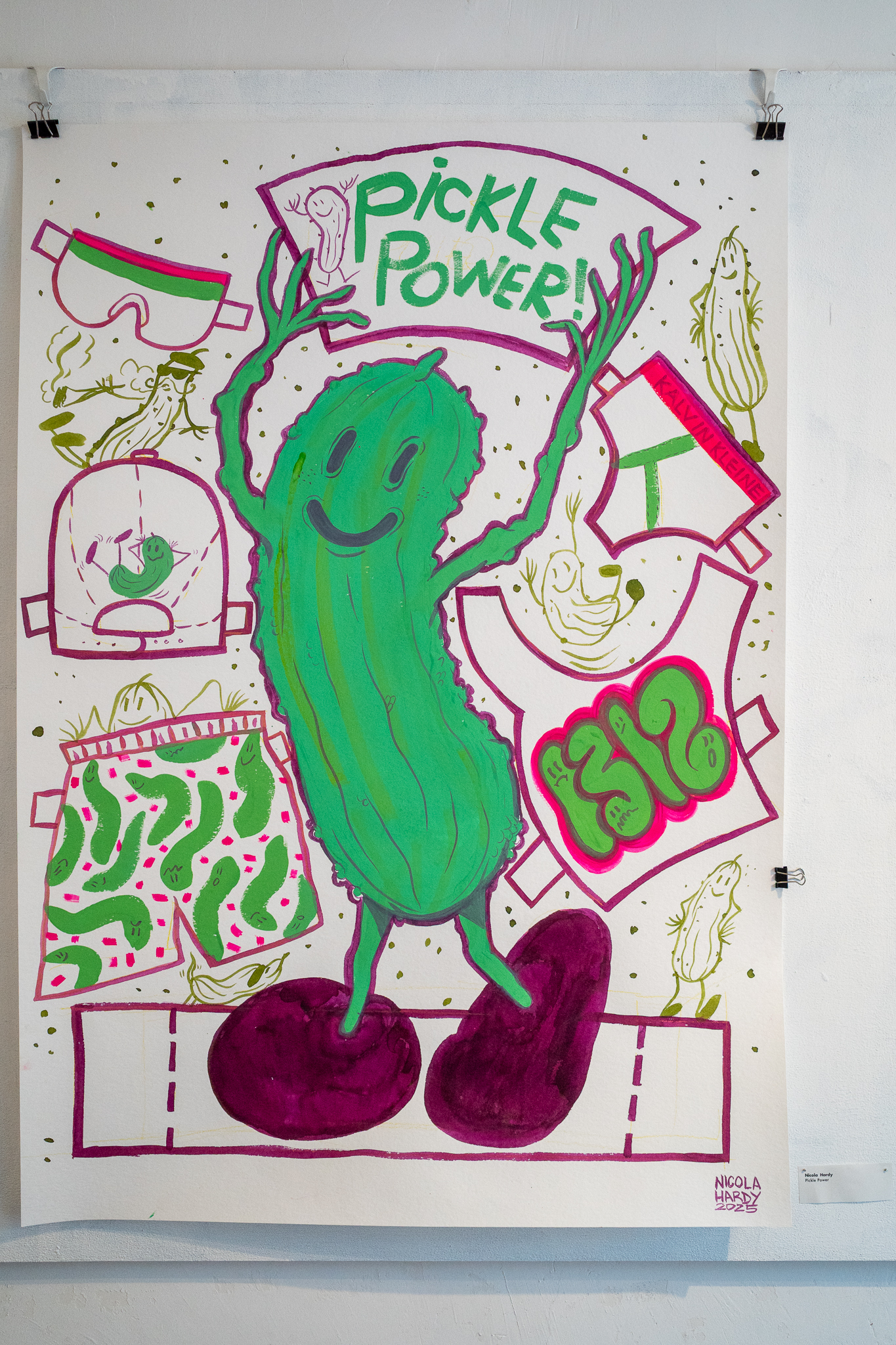 Kukumba My Lord – Dill With It 8 Gruppenausstellung von Gurkenkunst im Nachladen (Sternstraße 17, Hamburg), 06.09.–04.10.2025 Kukumba My Lord – Dill with it 8 Außenansicht des Nachladen am 10.09.2025 Andreas Czech – St. Cucumber Anna Fight – Pickle Sisters mit Sonntagsbraten Biljana Tomic – Santa Kukumba Bernd Spyra – Sturm im Gurkenglas Camila Machado – oT Camila Machado – oT Dada Reinhardt – Kukumba Dots Due Duci – Gurkenmann auf Gurke Daniela Kasimir – Gürkchen mit Schimmel Elisabeth K – „Dauxi Defekt mit Ente und Gurke“ (Foto Anja S.) FrauKe – oT Hans Braumüller – Heimat-BRD Harald Retzbach – Gurken + Glas Hysterical Times – The Art of the Dill Intelligenzbolzen – Gurkin Bag Johanna Königsberger – Gurken im System Julius Wagner – Gurkofon Kai Cassuben – oT Karin Hoefling – Big Dillover (Marx) Lana Bragin – Gurkenbunki Mana Schmidt – oT Marie Hamm – Pink Manta Nicola Hardy – Pickle Power Stefanie Rausch – Caught in the Act Sternstunden des Kapitalismus – Das Maskottchen zeigt sich verletzlich I&II Sternstunden des Kapitalismus – Dill With It Button Set Marti – oT Suchtdruck – Arbeiter und Spreewaldbäuerin