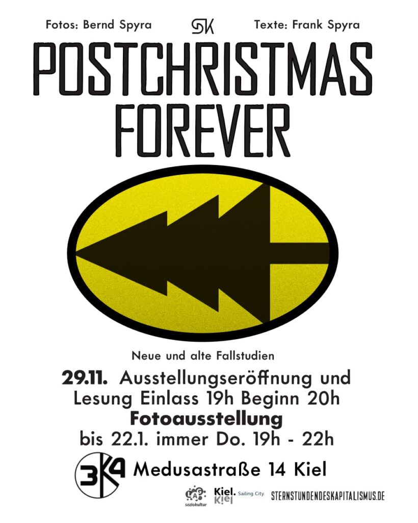 Ausstellungseröffnung und Lesung am Sa. 29.11.2025, 19:00h im K34 in der Medusastraße 14, Kiel.